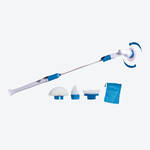 Ein leichter Druck genügt gegen Schmutz, Seifenränder, Schimmel u.v.m. Halterung und Bürsten aus Kunststoff bzw. Borsten aus Nylon, Verlängerungsstange (54 cm) aus Aluminium, Aufbewahrungstasche für Bürstenaufsätze aus Polyester. Kommt mit Ladeadapter, kuppelförmiger Bürste, Flachbürste, kegelförmiger Bürste. 100-240V/50/60Hz, ohne Verlängerungsstange 57 cm, mit Verlängerungsstange 1,07 m lang, leistungsstarker Akku, Laufzeit bei Anwendung 30 Minuten, 1,80 m Ladekabel.