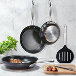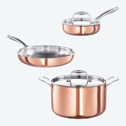 4-tlg. Set: 3 Pfannen, 20, 24, 28 cm Ø, Mehrschicht-Kupfer-Aluminiumkern + Jumbo Pfannenwender