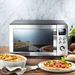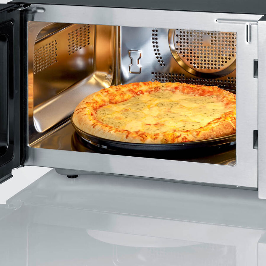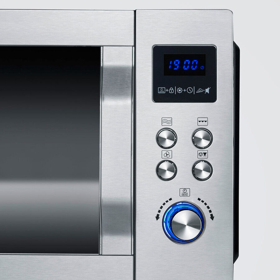 Genießen Sie mit der Pizza-Express-Funktion perfekt gebackene frische Pizza in nur 10 Minuten. Das herkömmliche Vorheizen des Backofens oder Auftauen von Tiefkühlpizza entfällt. Der vollwertige Ofen mit Ultra-Heißluftfunktion bis zu 230 °C sorgt für gleichmäßiges und konstantes Garen aller Speisen. Der Doppelgrill verfügt über Ober- und Unterhitze und bereitet knusprige Pizzaböden, Kuchen und vieles mehr. Schnelles Garen und Aufwärmen ermöglicht die Mikrowellenfunktion. Dank 8 Automatikprogrammen gelingen Fisch, Brathähnchen, Fleisch, Gemüse, Kartoffeln, Getränke, Eintopf oder Aufwärmen auf Knopfdruck.