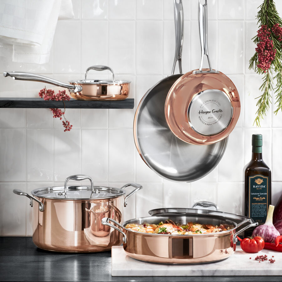 Hagen Grote Kupfer-Sauteuse Ø 20 cm - 5-schichtig, magnetischer Edelstahlboden, optimale Wärmeverteilung, backofenfest, Skalierung, alle Herdarten