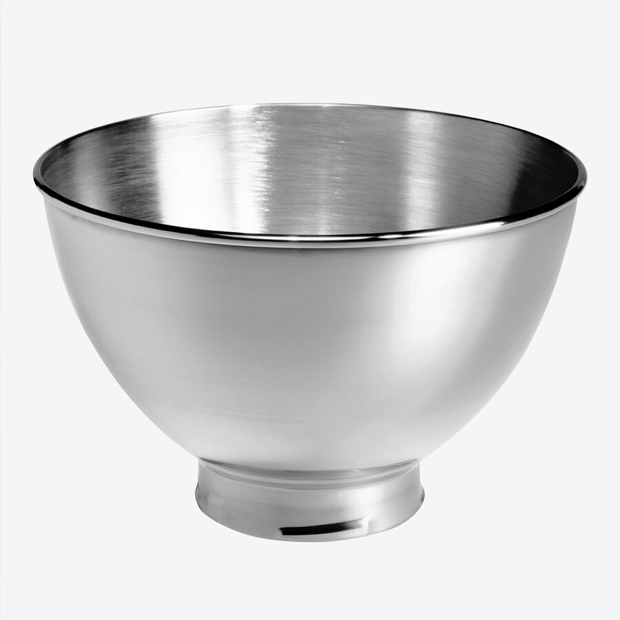 Ihre Qualität ist schon eine Legende. Als Haushaltsmaschine erbringt sie Leistungen, die sonst nur von Profimaschinen erwartet werden. Sie ist ganz aus Metall. Das macht diese Maschine mit der überlegenen Technik und der enormen Leistung unendlich robust. Über ein präzises Getriebe aus hochwertigen Metallen treibt der starke Motor das Rührwerk und alle Zubehörgeräte an. Die Arbeitsgeschwindigkeit stellen Sie 10-stufig von 58-220 Umdrehung/Minute ein. Auch bei schwerer Belastung bleibt die gewählte Arbeitsgeschwindigkeit konstant. Außergewöhnlich macht diese Maschine das Planetenrührwerk. Es führt die sich drehenden Rührwerkzeuge in einer zusätzlichen Kreisbewegung am Rührkesselrand herum. Durch diese Technik und enorme Leistung ist die KitchenAid auch in der Mischgenauigkeit anderen Maschinen überlegen. Ein 4,83-Liter-Edelstahl-Rührkessel, 3-Liter-Edelstahl-Rührkessel, Spritzschutz, Knethaken, Flachrührer, Flexirührer und Schneebesen gehören dazu. Durch den unglaublich starken Direktantrieb bei 58-220 Umdrehungen/Minute ist die KitchenAid mit nur 300 Watt wesentlich leistungsstärker, sparsamer und langlebiger als übliche Küchenmaschinen mit dreifachem Energiebedarf.