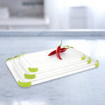 In 3 Größen und als 3er-Set erhältlich. Klein 26 x 16 x 1,4 cm (B/T/H), Skala 0-20 cm, mittel 33 x 20,1 x 1,55 cm (B/T/H), Skala 0-22 cm, groß 39 x 24 x 1,7 cm (B/T/H), Skala 0-27 cm.