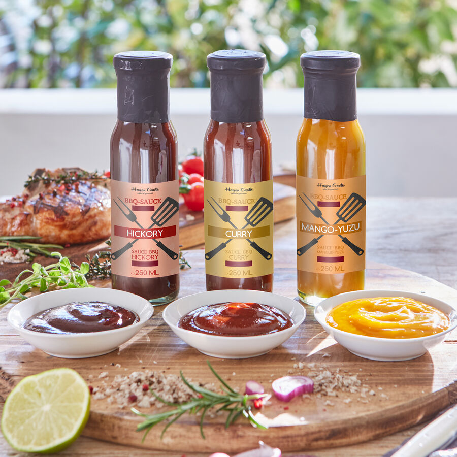 Dass voller Geschmack auch zuckerreduziert auskommt, beweist unsere Genussmanufaktur mit dieser sorgfältig hergestellten Mango-Yuzu-Barbecue-Sauce. Statt üblichem Haushaltszucker verwenden wir wertvollen Birkenzucker (Xylit) aus Finnland, der nicht nur 40 % weniger Brennwert hat, sondern sogar vor Karies schützen soll. So entsteht aus vollreifen Mangos, edler japanischer Yuzu und Curry eine herrlich fruchtige Grillsauce, die perfekt mit Geflügel, Fisch und Meeresfrüchten harmoniert. Aber auch Salatdressings verleiht diese Gourmet-Grillsauce eine fruchtig-exotische Note. 200 ml in der Glasflasche.