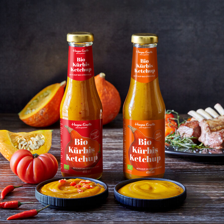 Hokkaido-Kürbispüree (71 %)*, Orangen und Limettensaft (aus Konzentrat)*, Apfelessig*, Agavendicksaft*, Rohrohrzucker*, Paprikamark*, Weizenstärke (glutenfrei)*, Meersalz, Curry-Gewürzmischung (enthält Senfmehl)*, Paprikaflocken*, Chili 0,5%*, Gewürze*, Verdickungsmittel Johannisbrotkernmehl* *aus kontrolliert ökologischem Anbau