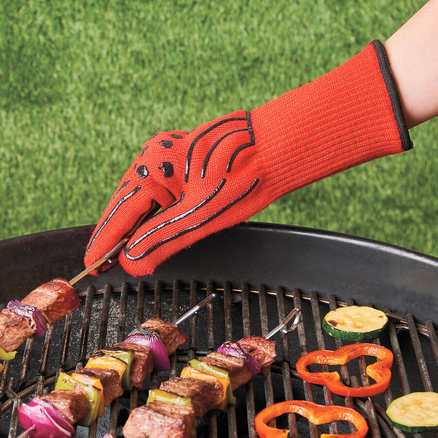 Die feuerfesten Handschuhe sind mit hochwertigem Hitzeschutzgewebe professioneller Schutzkleidung ausgerüstet. In den flexiblen, weich gefütterten Handschuhen bleiben Tastsinn und Fingerfertigkeit voll erhalten. Am Grill und im Ofen schützen sie zuverlässig vor Verbrennungen. Dank rutschfestem Profil kann den Händen bei der Arbeit nichts entgleiten.