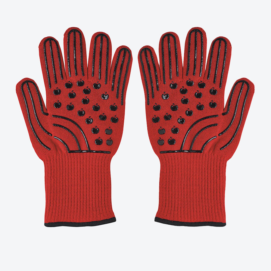 Die feuerfesten Handschuhe sind mit hochwertigem Hitzeschutzgewebe professioneller Schutzkleidung ausgerüstet. In den flexiblen, weich gefütterten Handschuhen bleiben Tastsinn und Fingerfertigkeit voll erhalten. Am Grill und im Ofen schützen sie zuverlässig vor Verbrennungen. Dank rutschfestem Profil kann den Händen bei der Arbeit nichts entgleiten.