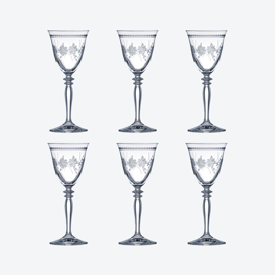 • Produktbild für 'Böhmische Kristall-Weingläser klein mit filigranem Pantografie-Blumenmotiv'