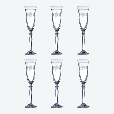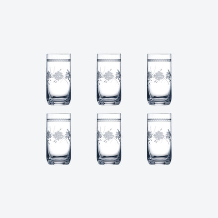 Böhmische Glasbläserkunst ermöglicht die klassische Fertigung dieser wunderschönen Vintage-Gläser. Stilisierte Blüten und Ranken veredeln die Gläser dauerhaft dank feinster Pantografie-Technik. Mit herausragender Klarheit und Brillanz genügen sie anspruchsvollsten Qualitätskriterien.
