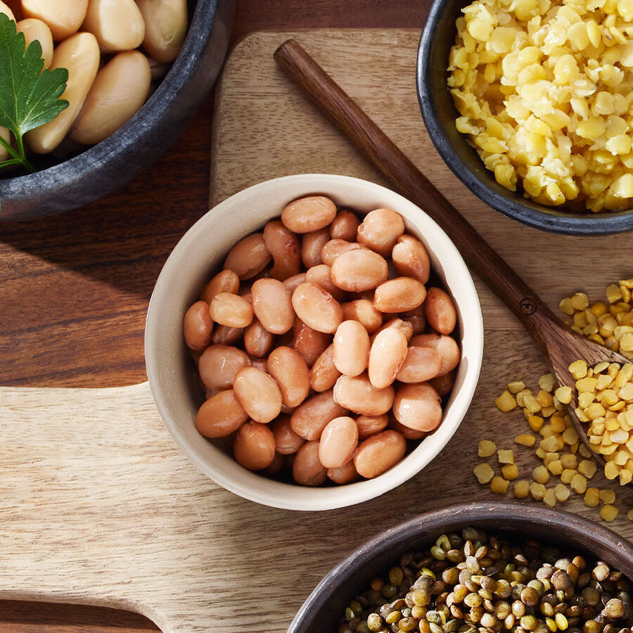 Fasioli borlotti (ital. braune Bohne) erfreuen sich in der Mittelmeerküche aufgrund ihres wunderbar cremigen, nussigen Geschmacks großer Beliebtheit. Die ursprünglich aus Südamerika stammende Sorte verfügt über eine auffällige, rosa-weiß marmorierte Schale, die sich beim Kochen dunkelrot färbt. Sie eignet sich ebenso für Salate wie für würzige Eintöpfe, als Beilage und zu Geflügel. Ganz ohne mühsames Einweichen werden die vorgegarten Bohnen direkt aus dem Glas verwendet.