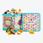 Bekannt und in ganz Frankreich begehrt sind Calissons seit dem 15. Jahrhundert. Fein gemahlene, süße Mandeln, provenzalische Melone und Orangenschale aus der sonnenverwöhnten Umgebung von Aix-en-Provence sind wichtige Geschmackskomponenten des außergewöhnlichen Konfekts. Inspiriert von den bunten Farben des traditionellen Karnevals der Region bietet diese herrliche Mischung kleine, bunte Calissons in 6 köstlichen Geschmackrichtungen: Klassisch, Himbeere, Feige, Kakao-Haselnuss, Orange, Zitrone.