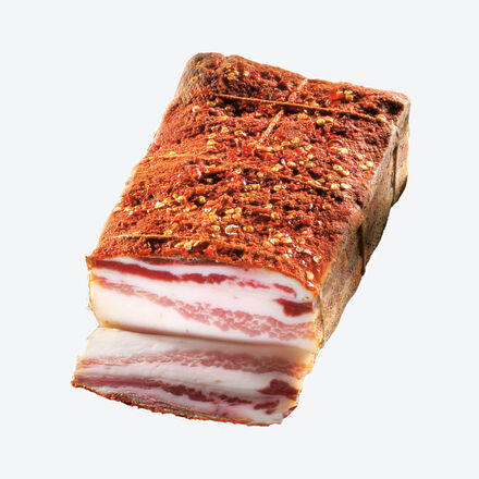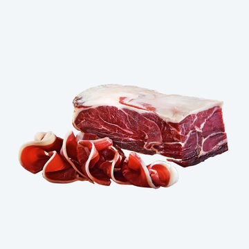 Gourmetexperten stufen diesen Originalschinken aus Guijuelo in der Extremadura als besten Schinken der Welt ein. Streng kontrollierte Richtlinien garantieren, dass die Schweine der Ibérico-Rasse dort nahezu wild aufwachsen. Durch ihre natürliche Ernährung mit vorzugsweise Eicheln aus den kargen, lichten Wäldern erreichen sie erst spät ihr Schlachtgewicht. Diese einzigartig ursprüngliche Haltung und eine mindestens 3-jährige Trocknung und Reifezeit machen den Bellota-Schinken superzart und wunderbar nussig. Der hohe Fettanteil, insbesondere bei Jamón Ibérico de Bellota, ist eines der markantesten Merkmale. Das Fett ist gleichmäßig in den Muskeln verteilt (Infiltration), was die Textur und den Geschmack erheblich verbessert. Ca. 500-g-Stücke aus der Keule ohne Knochen, naturbedingt nicht immer quadratisch. Unser Jamón Ibérico wird für Sie jede Woche frisch bestellt und ist deshalb nicht immer sofort lieferbar.