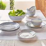 In einer erfahrenen portugiesischen Manufaktur entsteht dieses erfrischend gestaltete Steingut-Geschirr erster Qualität. Zu seiner Gestaltung und den sanften Farben inspirierte den Designer die unberührte Natur und charmante Schönheit der Atlantik-Insel Nantucket, Massachusetts. Stilvoll und zwanglos zugleich setzen Sie damit sommerlich gedeckte Tische in Szene.