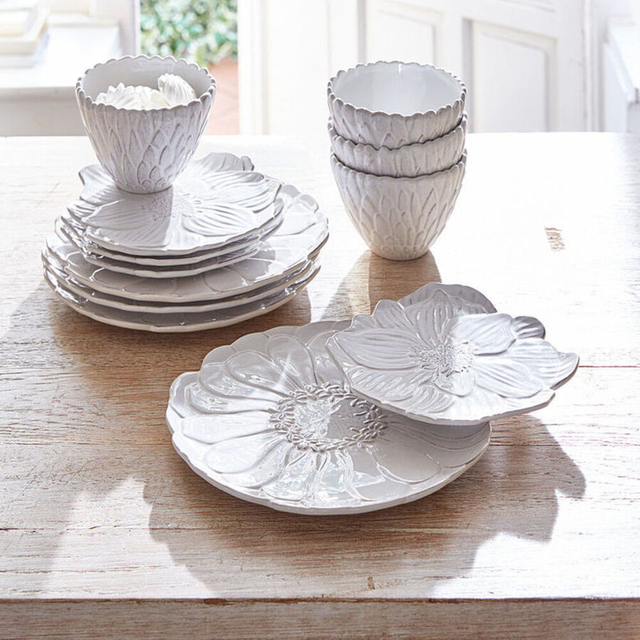 Exotische Blüten- und Palmblätter inspirierten bereits 1884 Rafael Bordalo Pinheiro zu den Entwürfen seiner kunstvollen Keramik. Bis heute produziert seine damals im portugiesischen Caldas da Rainha gegründete Manufaktur dekorative Teller und Schalen, die weltweit Tisch und Tafel von Jetset bis Hochadel schmücken. In Form gegossen und von Hand glasiert erhält jedes der detailreichen Stücke seine individuelle Optik. Neben klassischem Grün gibt es eine dezente weiße Variante, die allein oder im Farbmix ihre mediterrane Schönheit entfaltet.