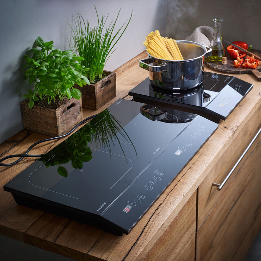 • Produktbild für 'Doppelinduktionskochfeld: Präzisionskochen auf 12 sensorgesteuerten Temperaturstufen'