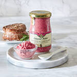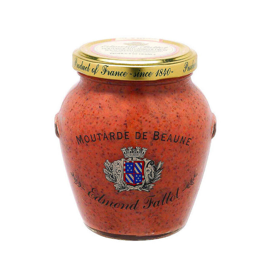 Seit 1840 macht Edmund Fallot feinsten Dijon-Senf. Sein roter Cassis-Senf ist eine besondere Spezialität. Aus dem hochkonzentrierten Saft schwarzer Johannisbeeren mit feinen Gewürzen und dem klassischen, groben Dijon-Senf entsteht diese besondere Delikatesse. Er ist mild und aromatisch. Damit bereichern Sie die Geschmacksvielfalt von Vinaigrettes, Saucen, Salaten und Fleischgerichten. Mit Crème fraîche gemischt entsteht eine milde, sehr feine rosa Sauce zu Fisch. 210 g.