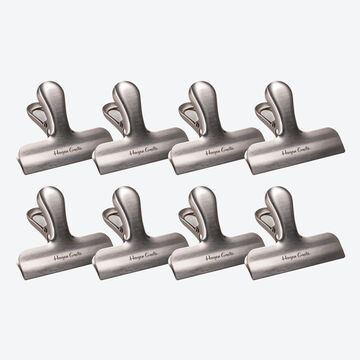 Die massiven Edelstahlklemmen mit solider Federkraft verschließen alle geöffneten Verpackungen wieder zuverlässig, ohne zu verrutschen. Nichts kommt unbeabsichtigt heraus oder hinein, Aromen bleiben erhalten.