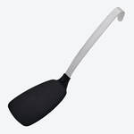 Aus gebürstetem, 2,5 mm starkem Edelstahl, 33 cm lang, Nylon-Wendefläche 12,5 x 8,5 cm (B/T), ergonomisch geformter Griff, spülmaschinenfest.