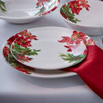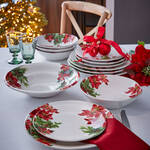 Einst brachte Naturforscher Alexander von Humboldt den Christstern (auch Poinsettia) aus Amerika mit nach Europa. Das Motiv der überaus beliebten Pflanzenart verleiht diesem kunstvollen Feinsteinzeug-Geschirr in italienischem Design eine wohlig winterliche Note. Die Teller werden bei ca. 1.080 °C gebrannt. Sie sind nicht kreisrund, sondern dynamisch gewellt geformt. Damit richten Sie prächtige Salate oder Desserts eindrucksvoll an. Ø 23 cm.