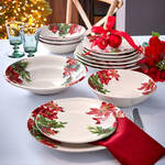 Einst brachte Naturforscher Alexander von Humboldt den Christstern (auch Poinsettia) aus Amerika mit nach Europa. Das Motiv der überaus beliebten Pflanzenart verleiht diesem kunstvollen Feinsteinzeug-Geschirr in italienischem Design eine wohlig winterliche Note. Für willkommene Opulenz sorgen extra große Essteller. Sie werden bei ca. 1.080 °C gebrannt und sind nicht kreisrund, sondern dynamisch gewellt geformt. Damit richten Sie prächtige Salate und Hauptspeisen eindrucksvoll an. Ø 29,5 cm.