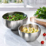 Bis zu 1 Stunde bleiben in den hochwertigen Edelstahl-Schüsseln Ragouts, Saucen, Gemüse oder Pasta warm, Desserts, Salate oder Eiswürfel dagegen kalt. Verstärken lässt sich der Effekt durch Vorkühlen im Eisfach oder Anwärmen mit heißem Wasser. Ideal zum stilvollen Servieren, Transportieren oder Aufbewahren.
