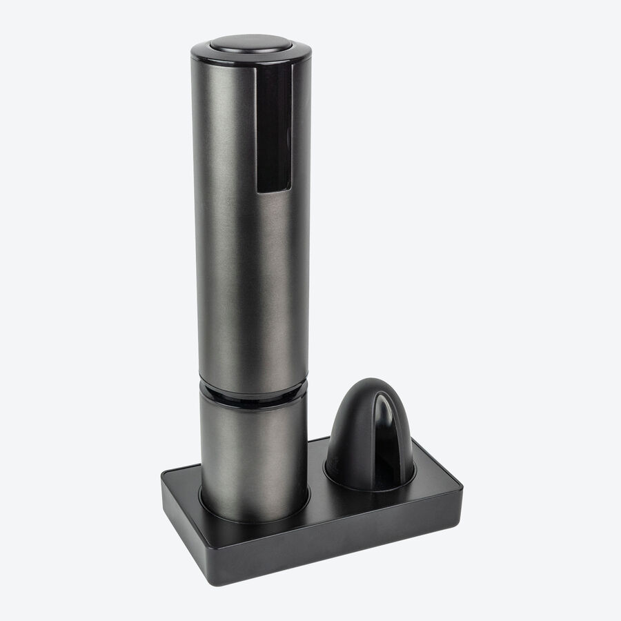 Elektrischer Weinöffner - Ø 4,5 cm, Automatisches Entkorken, für 40 Flaschen, Edelstahl/Kunststoff, mit Kapselschneider, 20 cm hoch, inkl. Ladestation
