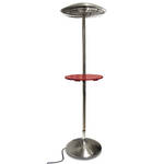 Edelstahl, 2 m hoch, ø 59 cm, wiegt 15 kg, 2 Heizstufen, 240V/2. 400W, 5 m Anschlusskabel, roter Hartholz-Ablagetisch, ø 50 cm (optional montierbar), Abdeck-Schutzhaube, geprüfte Sicherheit.