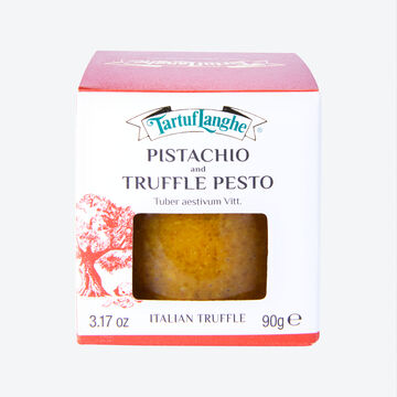 Dieses exquisite Pesto vereint feinste Pistazien (23 %) mit den intensiven Aromen italienischer Sommertrüffel (Tuber aestivum Vitt.). Ideal zum Verfeinern von Pasta, Gnocchi, Suppen oder als Aufstrich auf Crostini, Bruschetta.