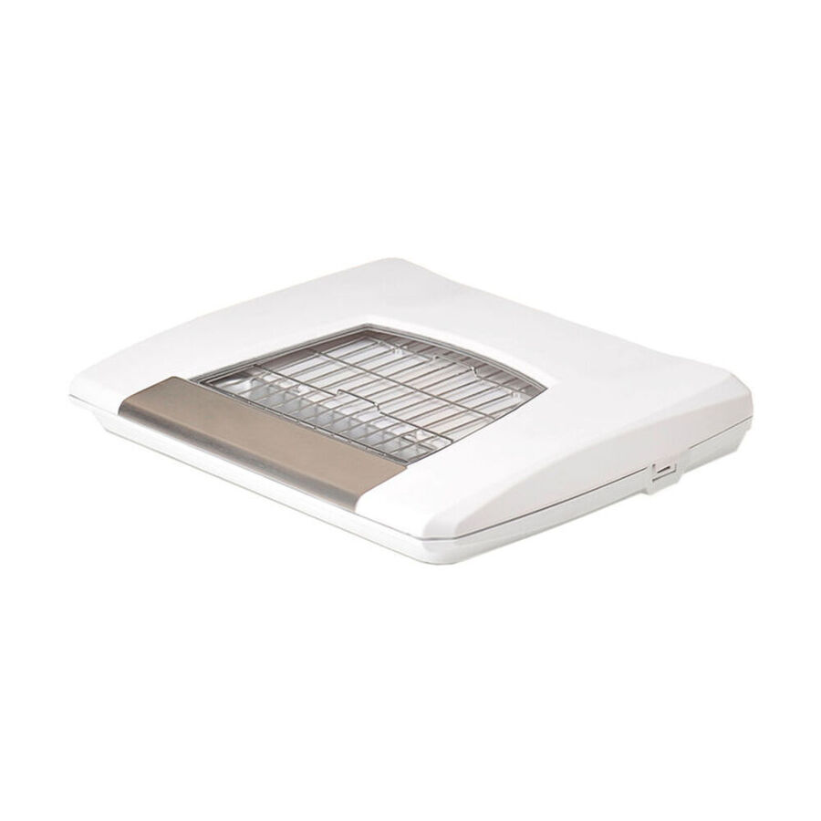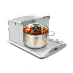 Korpus Kunststoff mit Sichtfenster, geöffnet innen 38 x 32 x 20 cm, 24 Liter Volumen, außen 46 x 37 x 27 cm (B/T/H)), wiegt 3,4 kg, Heizplatte/Wasserschale eloxiertes Aluminium, Edelstahl-Bodengitter, 230V/200W, 1,80 m Kabel, geprüfte Sicherheit.