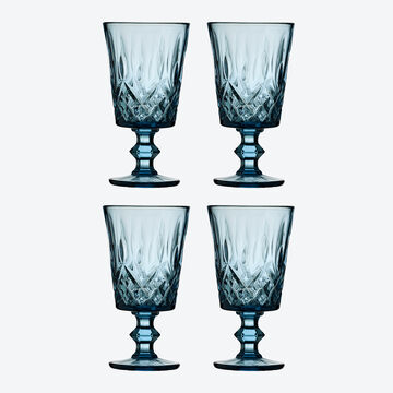 Facetten-Weingläser, Blau, 4 Stück, 16 cm hoch, 290 ml, stand-, stoß- und spülmaschinenfest