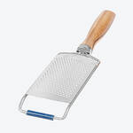 Edelstahl/Olivenholz, mit Griff 31,5 cm lang, Reibfläche 16,5 x 7,5 cm, Handwäsche zum dauerhaften Erhalt der Schärfe empfohlen, kommt mit Klingenschutz.
