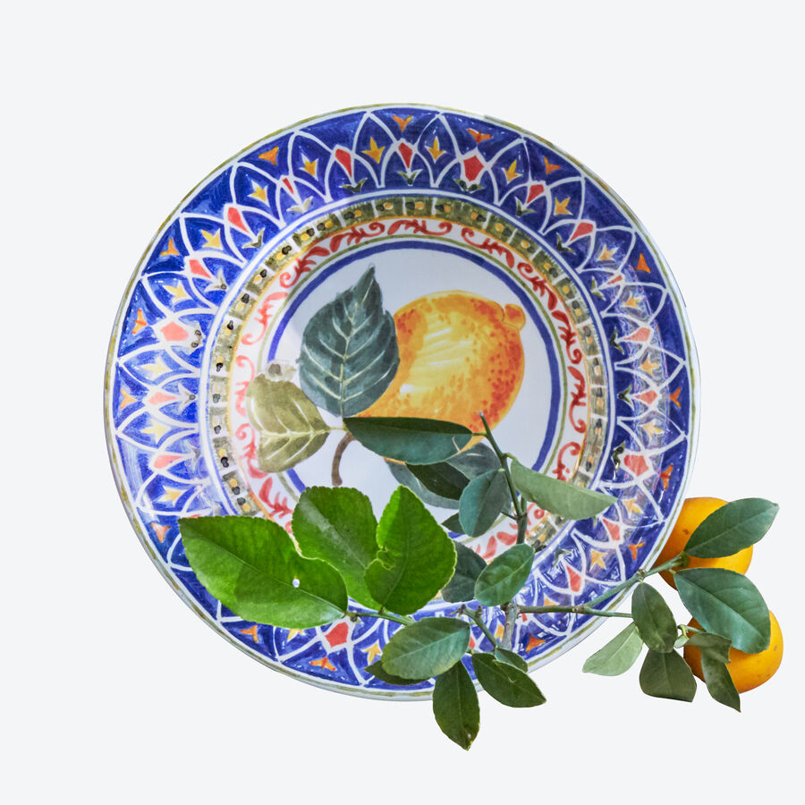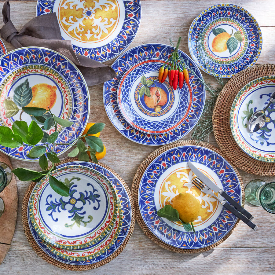 Caltagirone, ein kleines Städtchen auf Sizilien nahe Catania, gilt seit der Antike als Eldorado kunstvoller Keramik Malerei. Inspiriert von dieser Tradition entstehen diese wunderbaren Dekore in Italien. Von einzigartiger Harmonie ist die intensive mediterrane Farbigkeit verbunden mit traditioneller Ornamentik. Das luxuriöse Geschirr ist ebenso wunderschön wie praktisch und erfüllt höchste Ansprüche an ein robustes, alltagstaugliches Geschirr. Zweifach bei 1.080 °C hart gebrannte Keramik, lebensmittelechte Farben, Unterglasur, mikrowellengeeignet, ofen- und spülmaschinenfest.