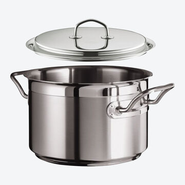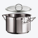 Der 8,8 mm dicke Mehrschicht-Boden mit 6 mm eingekapseltem Aluminiumkern speichert und verteilt die Hitze absolut gleichmäßig und hält sie konstant. Die nahtlos runde Form sorgt für bequemes Umrühren, nichts setzt an. Zuverlässig dicht schließt der Hochraum-Aromadeckel. Optimal für kleine Portionen. Edelstahl, 16 x 16 x 11 cm (B/T/H), mit Deckel und Griffen 26 x 18 x 17,5 cm (B/T/H), 2 l Inhalt, 8,8 mm Mehrschichtboden, 6 mm Aluminiumkern, Schüttrand, Isoliergriffe, ofenfest bis 250 °C, spülmaschinenfest. Für alle Herdarten inklusive Induktion.