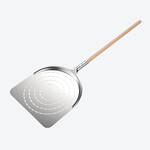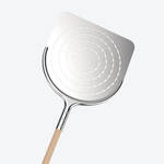 Sicher gelangen damit Pizza, Pinsa und runde Flammkuchen in den Pizzaofen (z. B. Nr. 164H04). Die Einkerbungen der Pizzaschaufel unterbinden die Entstehung eines bitteren Geschmacks durch das Verbrennen von überschüssigem Mehl.