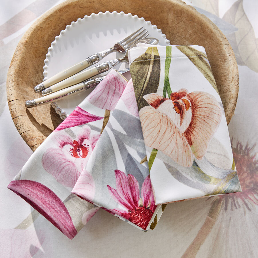 • Produktbild für 'Florale Servietten mit Fleckschutz aus sizilianischer Traditionsweberei'