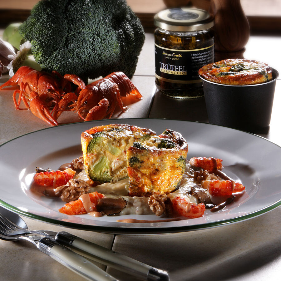 • Produktbild für 'Flusskrebs-Brokkoli-Flan auf Trüffel-Kartoffel-Schaum mit Walnüssen und Krustentiersauce'