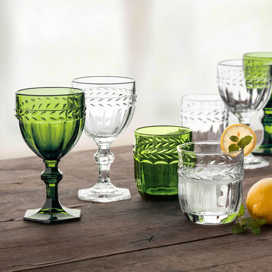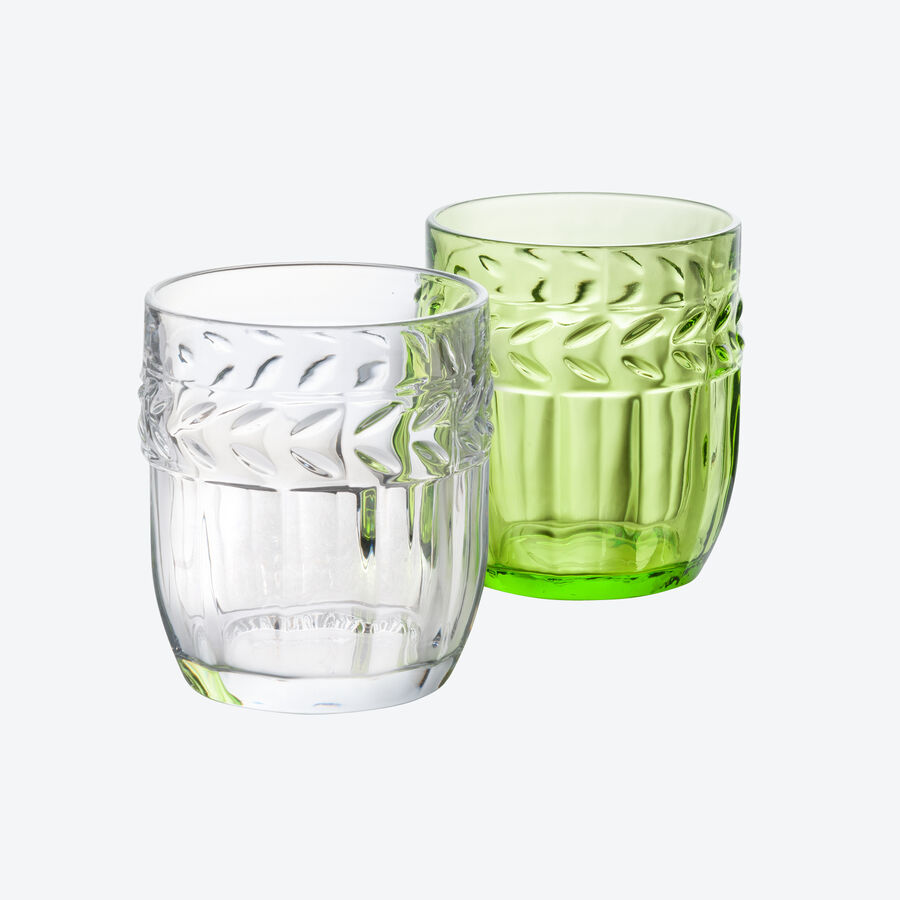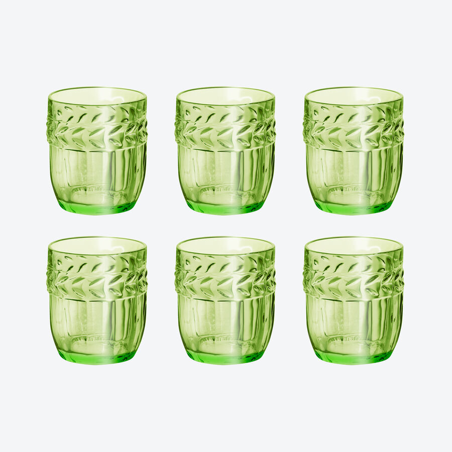Wasserglas Lorbeerdekor ,Grün, 400 ml, 6 stk
