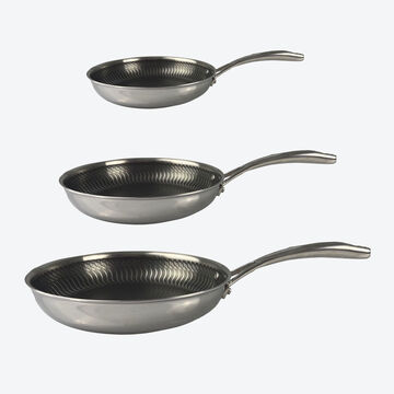 • Produktbild für 'Formschönes 3- tlg. Edelstahl-Pfannenset mit wärmeleitfähigem 3-lagigem Boden'