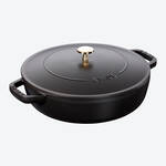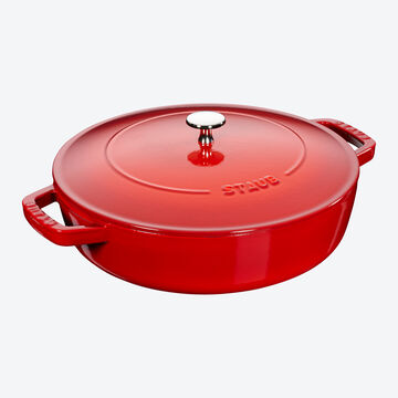 Staub Guss-Bistropfanne, mit Deckel, 28 cm Ø, Rund, Rot, Gusseisen, ofenfest bis 250 °C, spülmaschinenfest, für alle Herdarten inkl. Induktion