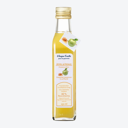 Dieses raffinierte Dressing besteht fast zur Hälfte (42 %) aus reinem, püriertem Fruchtfleisch in Kombination mit feinem Essig und wenig Zucker. Spitzenköche verwenden süßsaure Fruchtpüree-Essige pur oder kombiniert mit einem passenden, feinen Öl. Pur oder kombiniert bereichern Fruchtpüree-Essige Salate, Gemüse, Geflügel, Fisch, Meeresfrüchte, Desserts und Früchte mit ihrer delikaten Note. Rein natürliche Zutaten ohne künstliche Aromen, Farb- oder Konservierungsstoffe. Restalkohol bis zu 0,5 %.