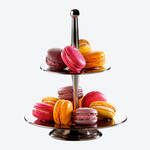 Einmalige Leckerbissen: Gefüllte französische Macaron Mandelbaisers. Die frischen Baisers aus feinporigem Eischnee und aromatischer Mandelcreme sind außen knusprig und innen angenehm mürbe. Beide Baiserschalen sind mit zarter Gourmet-Buttercreme verschiedener Zutaten gefüllt. Wie man daraus derart sündhaft leckere Köstlichkeiten machen kann, ist das Geheimnis des prominenten Confiseurs. Für gerade fertig gestellte Macarons bilden sich vor Pariser Biscuiterien häufig Schlangen begeisterter Genießer.