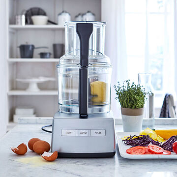 Sein 1.100 Watt Hochleistungsmotor (1.500 Umdrehungen/Minute) arbeitet nahezu doppelt so stark wie herkömmliche Universalmotoren. Ruhig und leise verrichtet er mit automatisch geregelter konstanter Drehzahl mühelos Schwerstarbeit. Schwere Teige sind im Nu zubereitet, Pizzateig in rekordverdächtigen 22 Sekunden. In den großen Einfüllschacht passen unzerkleinert große Gemüse. Handgeschliffene, selbst schärfende französische Sabatier Messer schneiden daraus mit beeindruckender Präzision feinste Scheiben. Ebenso perfekt gelingen Raspeln, Früchte pressen oder Mahlen, Rühren, Kneten, Pürieren, Mixen, Eischnee und Sahne schlagen. Das spart enorm viel Zeit und Handarbeit. Er ist platzsparend kompakt, wartungs- und verschleißfrei. Korpus verchromt 21 x 26 x 44,5 cm (B/T/H), Polycarbonat-Aufsatzbehälter 3,6/2,6/1,2 l, 10-teiliges Zubehörset in platzsparender Box: 3 Polycarbonat Aufsatzbehälter BPA-frei (3,6 l, 2,6 l, 1,2 l), Messer, Teigkneter, Rührbesen, 4 Raspel/Schneide-Scheiben 2 und 4 mm, Zitruspresse mit 2 Press-Kegeln, Mixeinsatz, Reinigungsschaber, Rezeptbuch. 230V/1.100 W, 1,1 m Anschlusskabel, geprüfte Sicherheit. Einfache Reinigung, spülmaschinenfest (bis 40 °C).