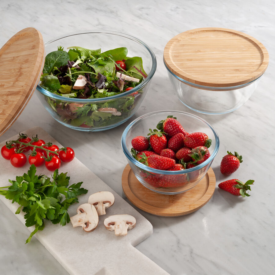 Glasschüssel mit Bambus-Silikondeckeln zum perfekten Aufbewahren und Servieren