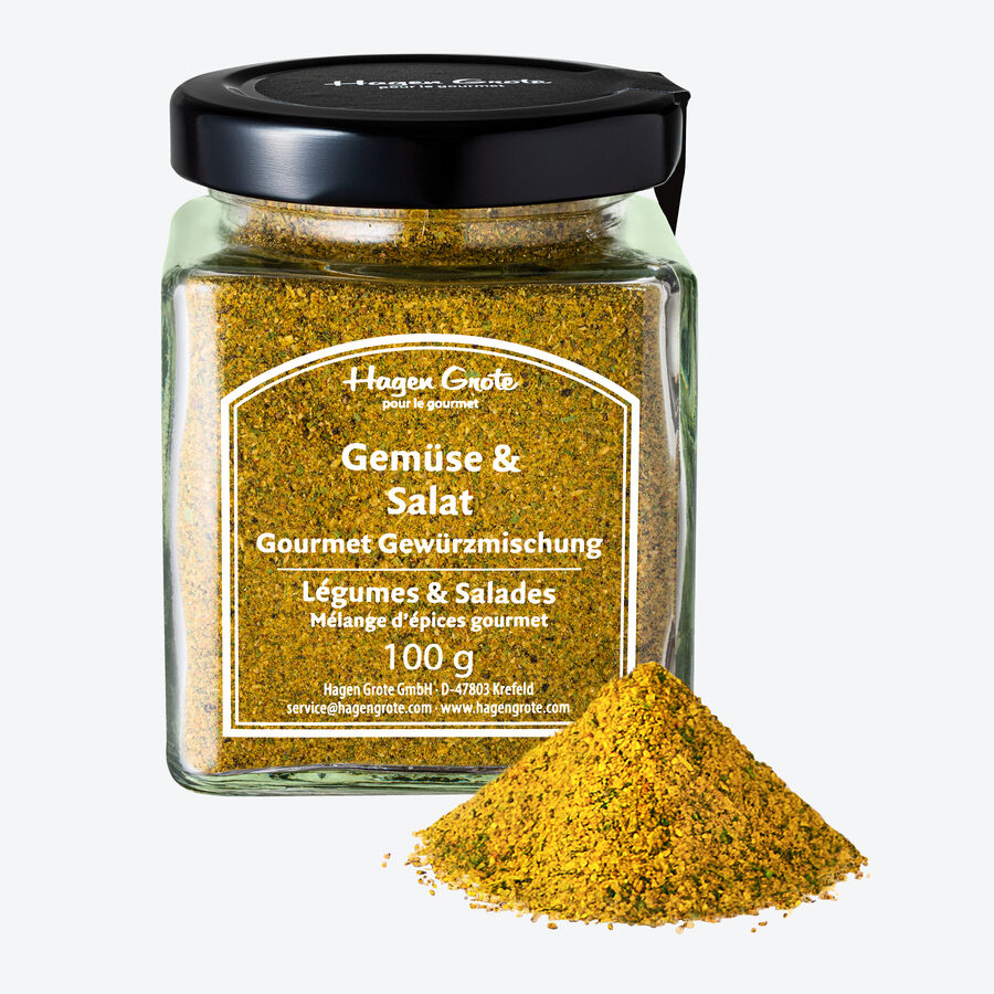 Nach strengen Hagen Grote Kriterien, wie natürlicher Kultivierung oder biologischem Anbau, erfolgt die weltweite Gewürzauswahl. Perfekt stimmen unsere Gewürzspezialisten die feinen Zutaten zu harmonischen Mischungen voller Würzkraft und reicher Geschmacksfülle aufeinander ab. Kräuter betont und dezent unterstützen die feinen Aromen der Gewürzmischung die angenehmen Geschmacksnuancen von Gemüse, würzigen Salaten und Salatsaucen. Aber auch Hülsenfrüchte bereichert der angenehm aromatische Kräutergeschmack. Mit 1 TL würzt man 500 g Gemüse.