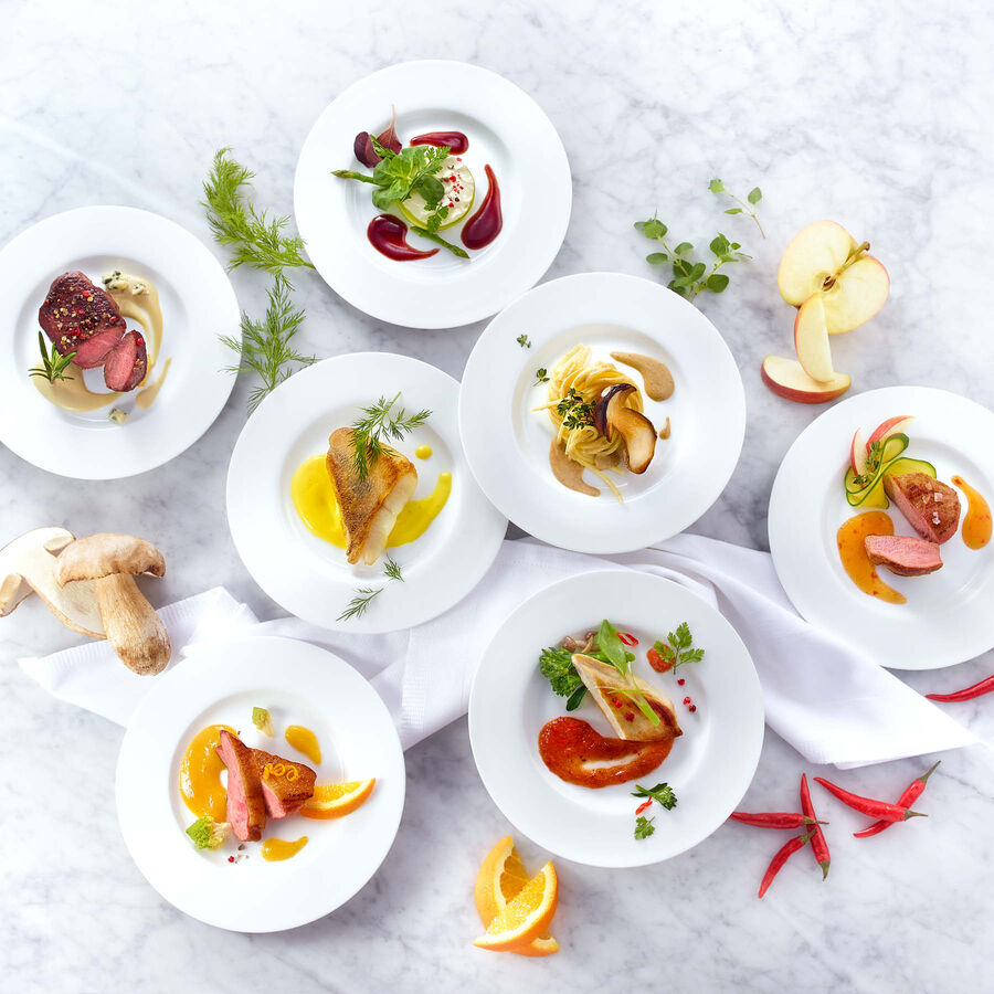 In nur kleinen Mengen entstehen diese erlesenen Saucen in unserer Delikatessen-Manufaktur. Aus besten, frischen Zutaten schonend gekocht, entfalten sie ihr unvergleichliches Aroma. Ganz neu ist unsere harmonisch-fruchtige Apfel-Curry-Sauce aus knackigen Elstar vom Bodensee, frischen Zwiebeln und Paprikastückchen. Sie passt vorzüglich zu Fisch, Geflügel und Gemüse. Fruchtig und leicht säuerlich schmeckt die dunkelviolette Holunderbeer-Sauce aus frischen Beeren, mit Apfel, Zitrone, Ingwer und Kardamom verfeinert. Hervorragend ist sie zu Wild, Ente, Gans und Rind oder als Glasur für Spare Ribs. Fruchtig-leichte Thai-Ingwer-Sauce mit frischem Gemüsepaprika, Chili, Curry und Zitrone, verleiht asiatischen (Wok-)Gerichten aromatische Fülle. Roquefort-Sauce aus dem weltbesten Blauschimmelkäse ist eine klassische Sahnesauce. Perfekt zu kurz gebratenem Fleisch, Pasta, gedünstetem Gemüse. Steinpilz-Sauce mit reinem Gemüsefond und rahmiger Sahne prägt würziger Duft handverlesener edler Steinpilze. Ideal zu Geschnetzeltem, Geflügel, Risotto, Pasta oder als feines Süppchen. Orangen-Sauce verzaubert mit aromatischem Duft spanischer Orangen. Fruchtig-frisch ist sie ideal zu Ente, Hähnchenbrust, Fisch und Meeresfrüchten. Ebenfalls köstlich zu Meeresfrüchten und Fisch oder auch zu Pasta ist unsere edle, aromatische Safran-Sauce, verfeinert mit Sahne, Weißwein, Olivenöl und Noilly Prat.