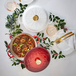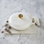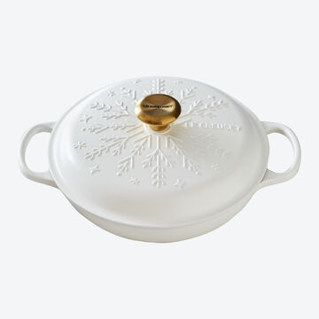 Mattes Weiß und eine elegante Schneeflocken-Prägung zeichnen dieses klassische Kochgeschirr in limitierter Auflage aus. Dank der optimalen Wärmeleiteigenschaften des Gusseisens sowie seiner flachen Form eignet sich der hochwertige Kochtopf ideal zum Anbraten. Auch Schmorgerichte und Aufläufe gelingen perfekt. Wunderbar auch zum stilvollen Servieren.