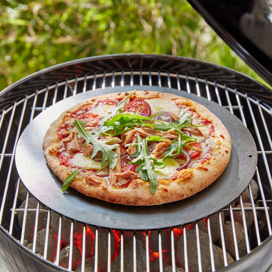 Backstahl - Ø 35,5 cm, rund, bis 300 °C, 3360 g, perfekte Wärmeleitung für knusprige Pizza & Brot, für Backofen & Grill, außen knusprig, innen saftig
