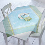 Handgemalte österliche Motive bilden die Vorlage für diese äußerst hochwertigen Leinen-Baumwoll-Tischdecken. Österliche Hasen, Gänse und Hühner in Pastell-Tönen verleihen zusammen mit der natürlich glänzenden, changierenden Oberfläche eine luxuriöse Optik und zauberhafte Leichtigkeit. 50 % Leinen, 50% Baumwolle, mit Couvert-Ecken und nahezu unendlich haltbar. Tischdecken uni blau mit mehrfarbigem Rahmen. Waschbar bei 60 °C.