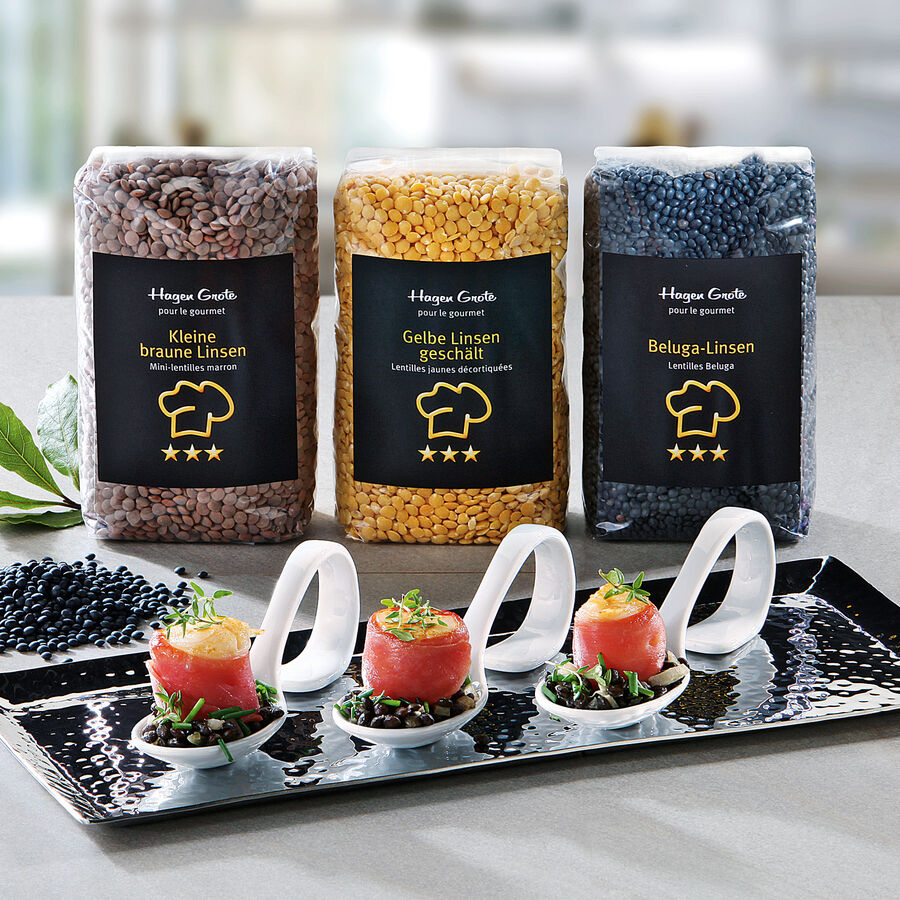 • Produktbild für 'Jakobsmuscheln auf Beluga-Linsen-Salat'