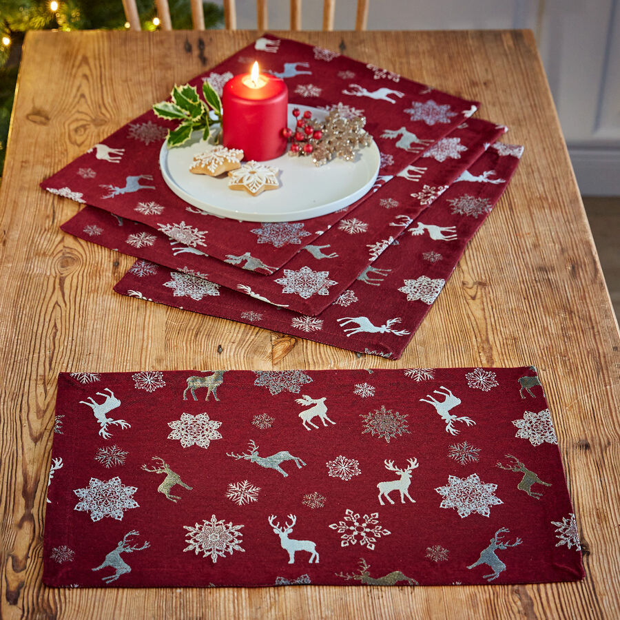 Jaquard-Tischsets mit winterlichem Hirschmotiv