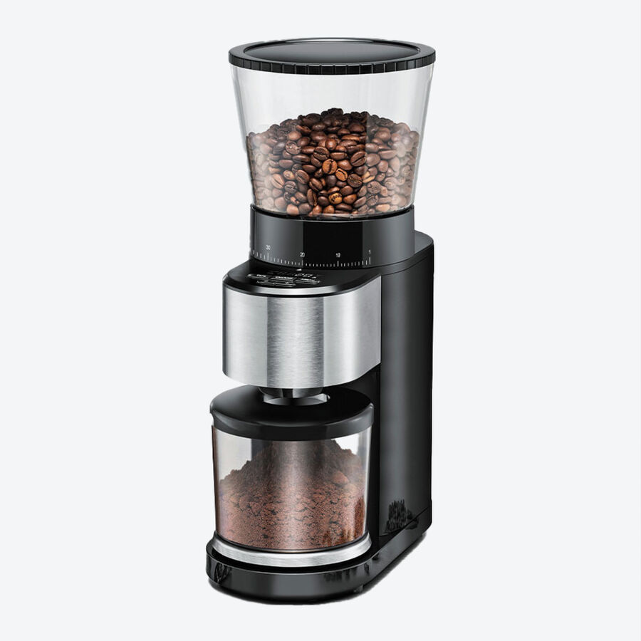 Das leistungsstarke Edelstahl-Kegelmahlwerk der elektrischen Kaffeemühle zerkleinert Bohnen gleichmäßig und schonend. Je nach Verwendung sind 39 individuelle Mahlgrade möglich. Von pulverfein für Espresso bis grob für French Press Kaffee.